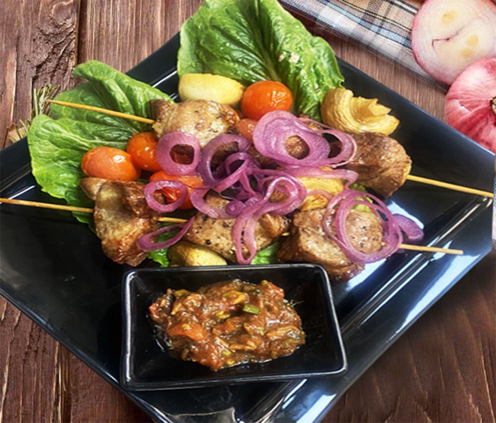 Шашлык из языка с соусом сацибелли