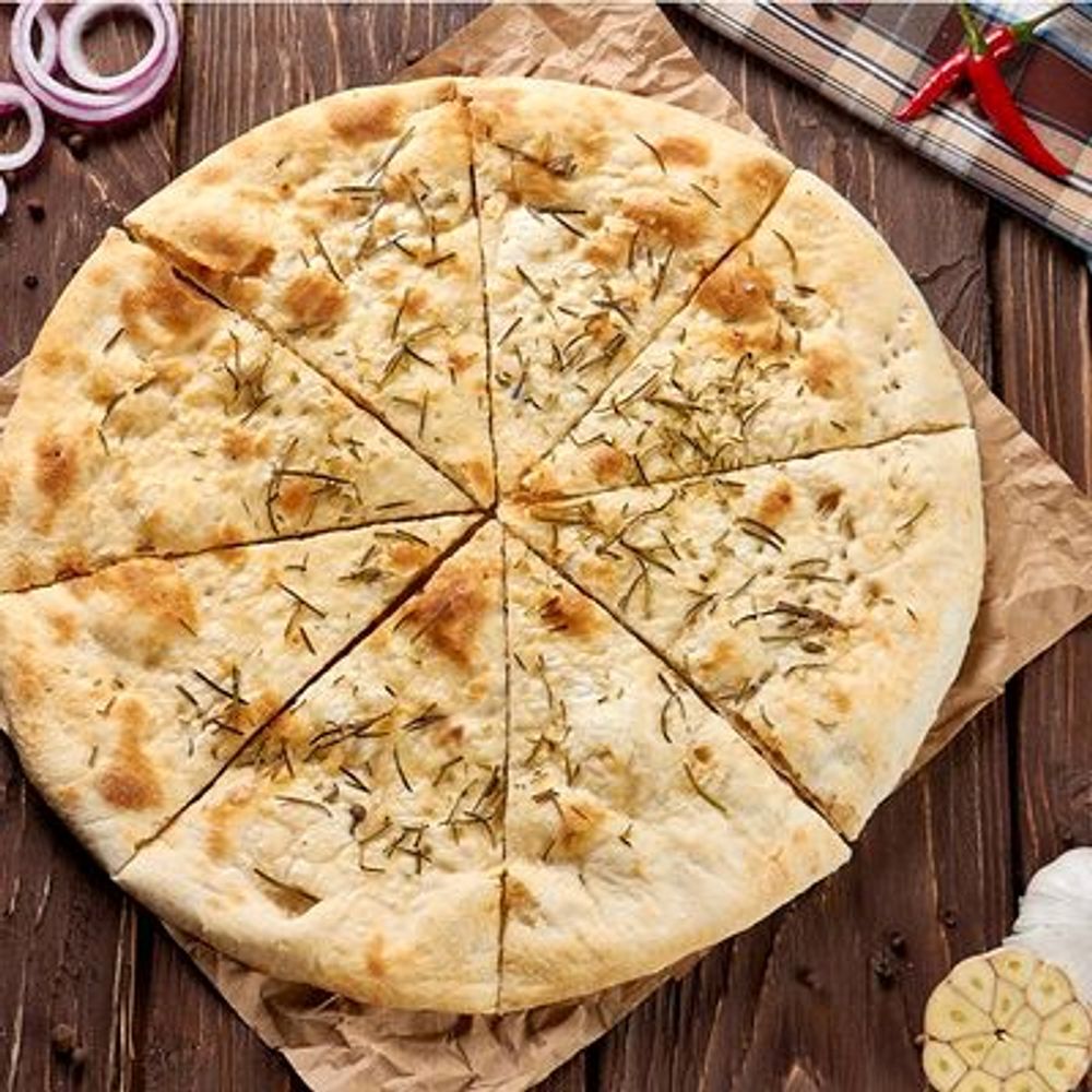 Классическая итальянская лепешка с морской солью, свежим розмарином и оливковым маслом, приготовленная в печи по вашему заказу к супу или горячему блюду