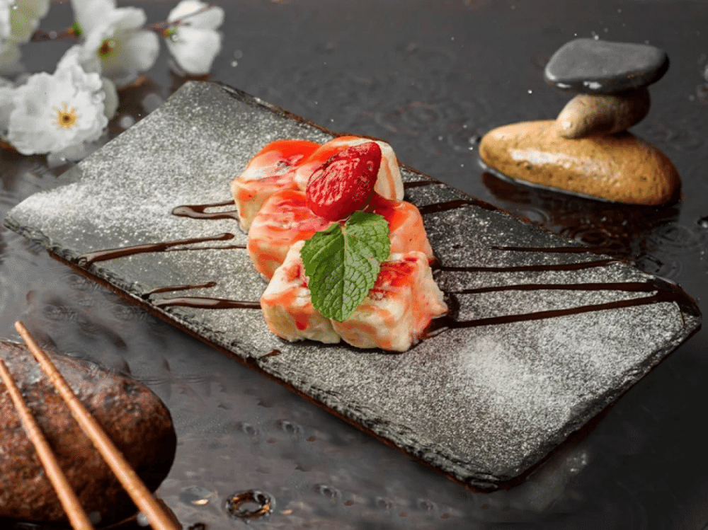 Воздушный рисовый пудинг, с клубникой, бананом, киви и кокосовой стружкой