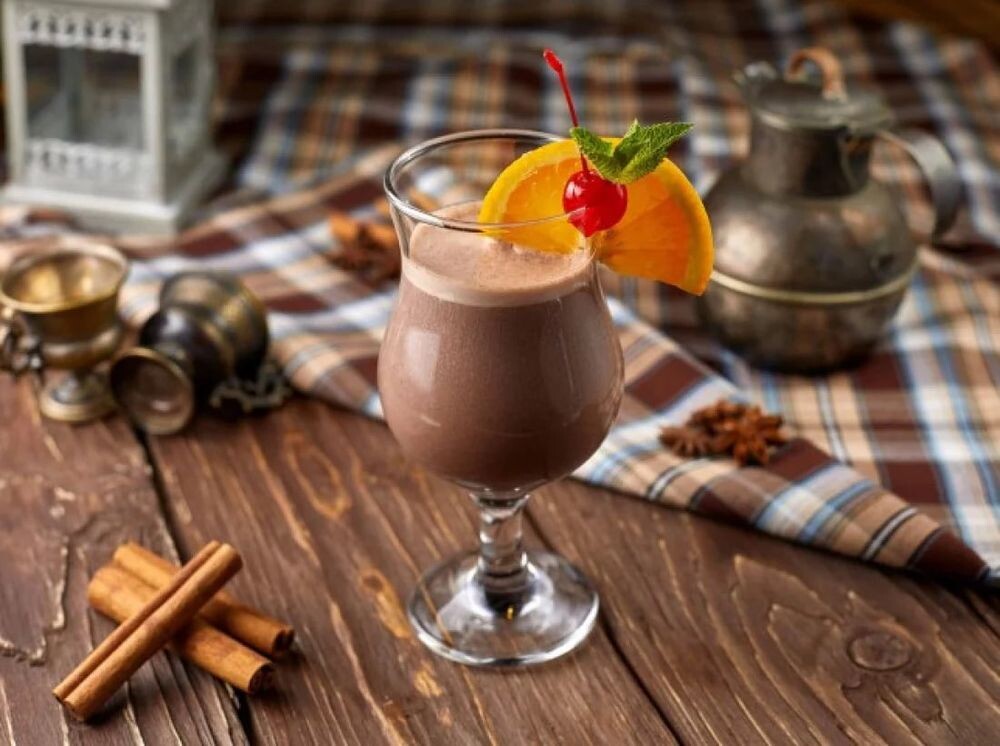 Молоко, шоколад, банан, корица.