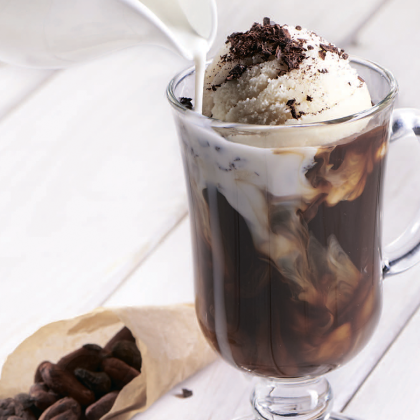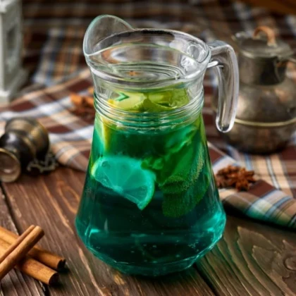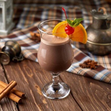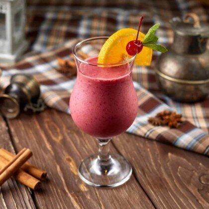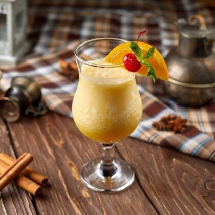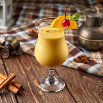 Смузи с йогуртом , свежим манго , кокосовым молоком и мускатным орехом