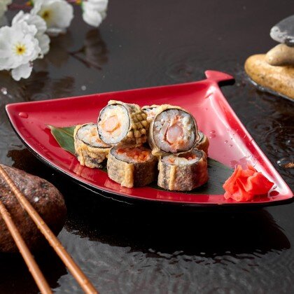 Семга гриль , айсберг, перец болгарский, сливочный сыр, сухари панко , спайс соус